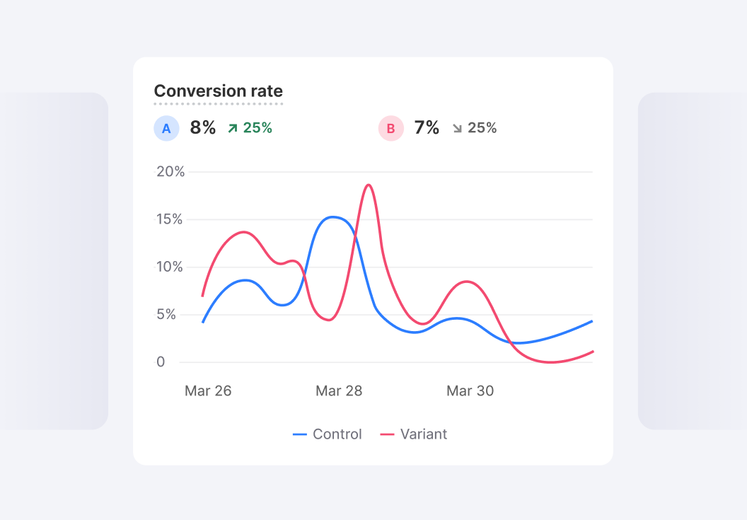 Compare Control vs Variant at the page-pair level. Drill into metrics, analyze behavior, and make decisions with precision.