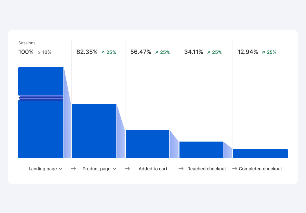 Track the full customer journey — from landing, to add-to-cart, to checkout, to purchase. Spot where users drop off and optimize your funnel.