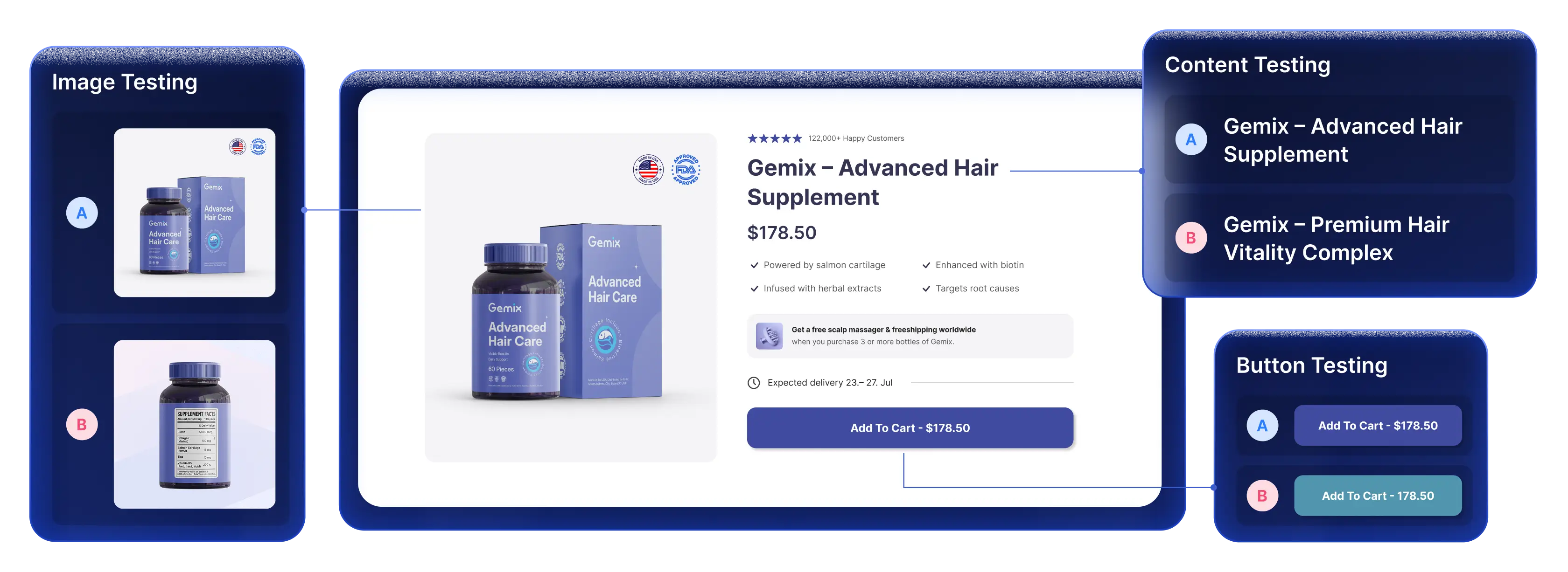 Run precise A/B tests on elements like headlines, buttons, or images, all within a single page layout. Perfect for quick wins and focused iteration without affecting your full funnel.